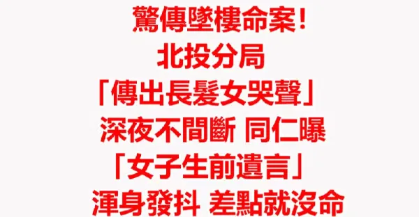 北投分局墜樓命案!「深夜有長發女哭聲」同仁曝「女子生前遺言」渾身發抖:差點就沒命