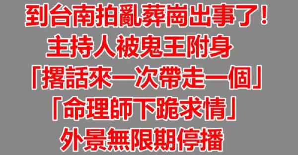 到台南拍亂葬崗出事了…主持人被鬼王附身「撂話來一次帶走一個」 「命理師下跪求情」外景無限期停播