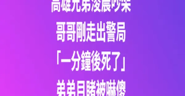 高雄兄弟凌晨吵架!哥哥剛走出警局「一分鐘後死了」 弟弟目睹嚇傻