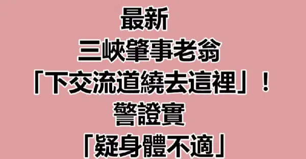 最新/三峽肇事老翁「下交流道繞去這裡」!警證實:「疑身體不適」