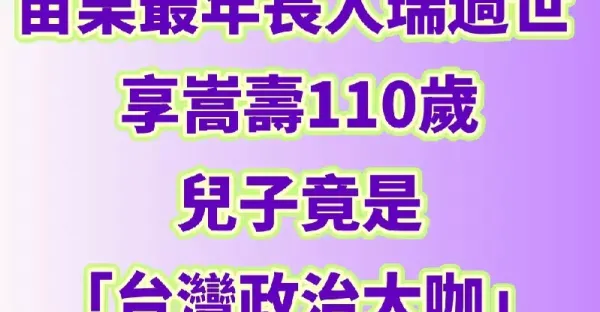 苗栗最年長人瑞過世! 享嵩壽110歲「兒子竟是台灣政治大咖」