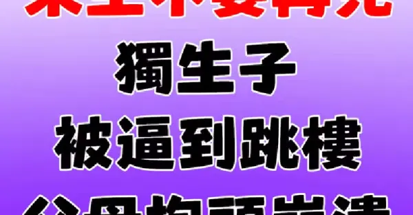 「今生不再相欠,來生不要再見」獨生子被逼到跳樓 父母抱頭崩潰:真的對不起