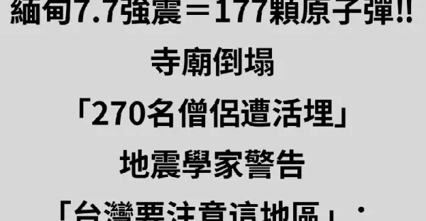 最新/緬甸7.7強震=177顆原子彈‼ 寺廟倒塌「270名僧侶遭活埋」...地震學家警告「台灣要注意這地區」:恐觸發規模6以上地震