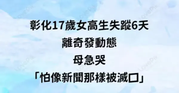 快訊/彰化17歲女高生失蹤6天!離奇發動態 母急哭「怕像新聞那樣被滅口」