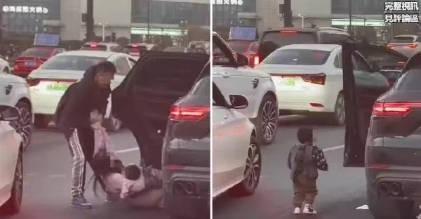 當街暴走!夫強拖妻兒「丟包快車道」,人妻爬回駕駛座獨留幼童哭嚎,驚悚10秒畫面曝光:路人都怒了