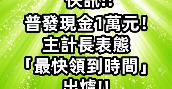 快訊/普發現金1萬元!主計長表態「最快領到時間」出爐