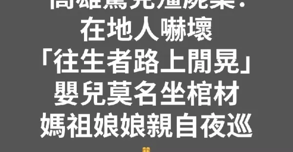 高雄殭屍奇案!在地人驚曝「往生者路上閒晃」嬰兒莫名坐棺材 媽祖娘娘「親自夜巡」如今仍有怪事~