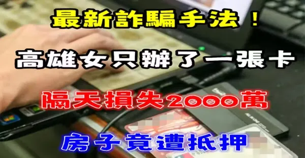 最新詐騙手法!高雄女「只辦了一張卡」 隔天「損失2000萬」房子遭抵押!