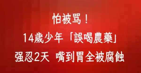 怕被罵!14歲少年「誤喝農藥」強忍2天 嘴到胃全被腐蝕