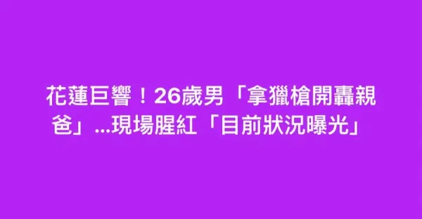 花蓮傳巨響!26歲男「拿獵槍開轟親爸」現場紅一片 目前狀況曝光