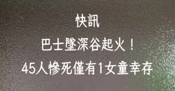快訊/巴士墜深谷起火!45人慘死 僅有1女童倖存