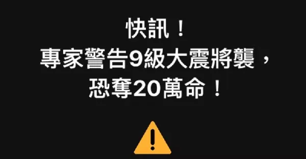 快訊!專家警告9級大震將襲,恐奪20萬命!