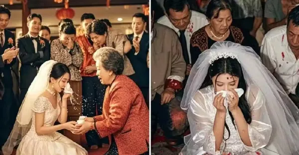 新娘敬茶時被婆婆潑卸妝水,她當眾擦掉半張臉,全場親戚突然集體下跪