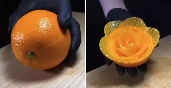 把橘子切成花瓣的形狀,日本切雕技術大師的一流刀法展現