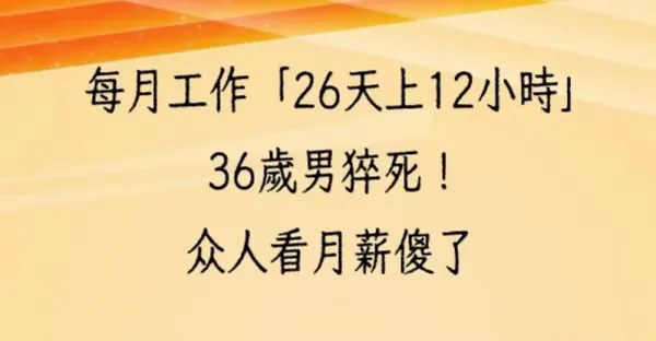 每月工作「26天上12小時」 36歲男猝死!眾人看月薪傻了!