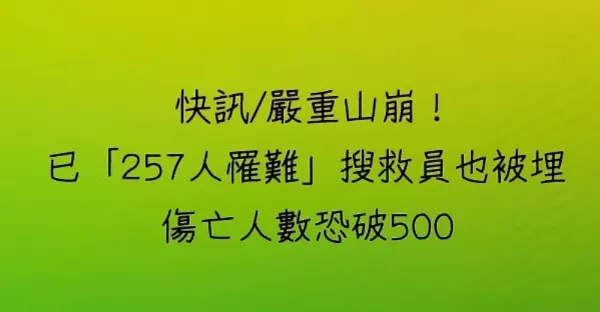 快訊/嚴重山崩!已「257人罹難」搜救員也被埋 傷亡人數恐破500