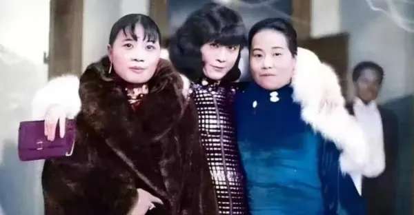 1930年,于鳳至身穿貂皮摟著宋氏兩姐妹合影,風光無限氣場強大!