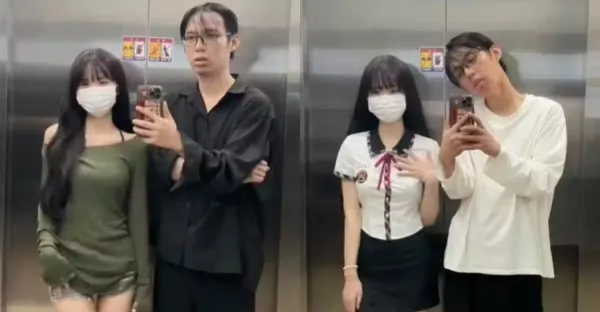 邋遢男天天曬「與女友電梯自拍」,被嗆快去洗頭,「女方口罩一拉下」網友全搖頭了~
