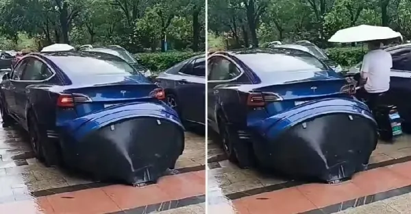 路遇特斯拉車尾「鼓出一大塊」,他好心上前「尋車主」想告知,卻遭網友阻攔:你不要命了嗎