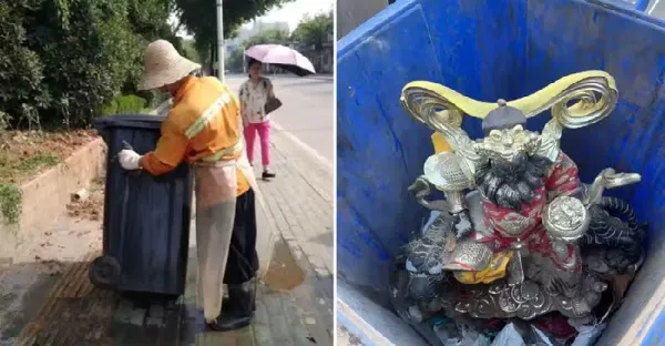 佛像「被扔垃圾桶」骯髒不堪!拾荒老人看清「佛像全貌」後直言:此人後果不堪設想