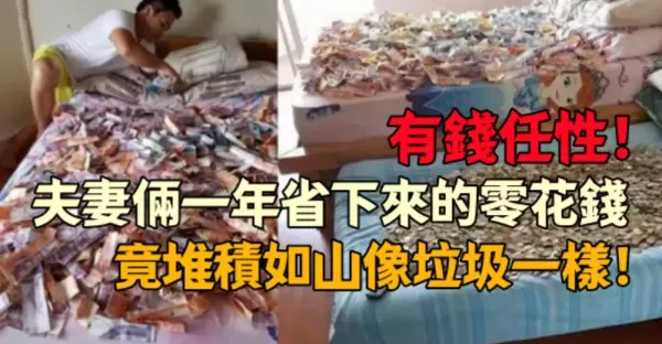有錢任性,夫妻倆一年省下來的零花錢竟「堆積如山」,像垃圾一樣