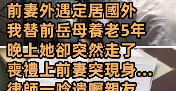 前妻外遇定居國外,我替前岳母養老5年,晚上她卻突然走了,喪禮上前妻突現身…律師一念遺囑親友全都傻了