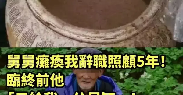 舅舅癱瘓我辭職照顧5年! 臨終前他「只給我一個米缸」房產全歸兒子,直到打掃房「無意間打破它」…