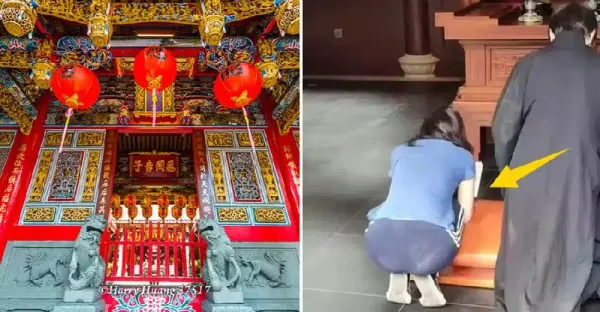 女生寺廟拜佛求願,虔誠下跪祈禱,「一細節」卻慘遭路人狠批:對神明大不敬!