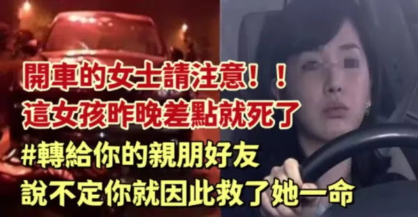 開車的女士請注意!!這女孩昨晚差點就死了..(轉給你的親朋好友,說不定因此救了她一命)