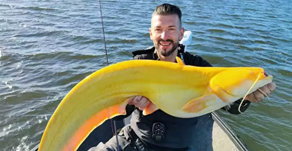 德國漁民釣到罕見金黃大鲶魚 外形酷似香蕉