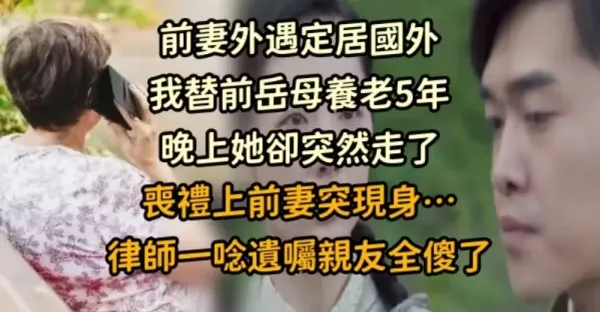 前妻外遇定居國外, 我替前岳母養老5年,晚上她卻突然地走了,喪禮上前妻突現身…律師一念遺囑親友全傻了…