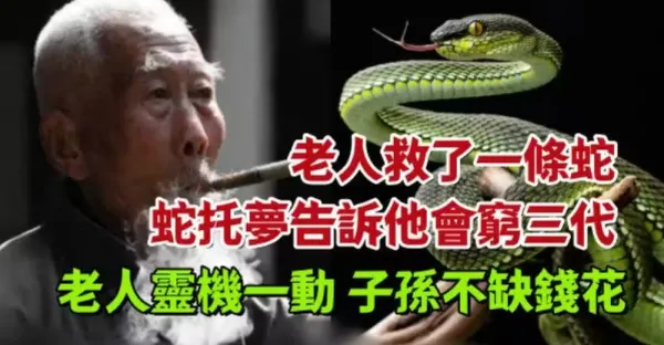 老人救了一條蛇,蛇託夢告訴他會窮三代,老人靈機一動,子孫不缺錢花了