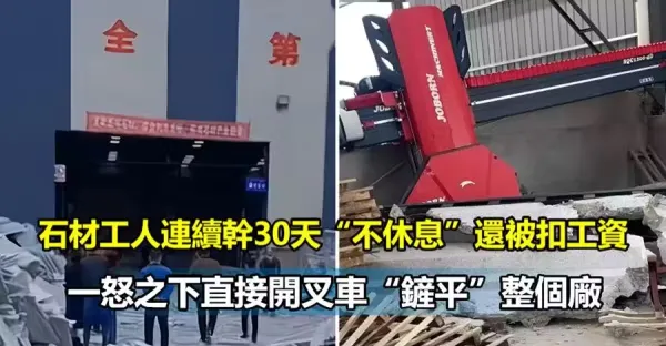 石材工人連續干30天「不休息」還被扣工資,一怒之下直接開叉車「剷平」整個廠!