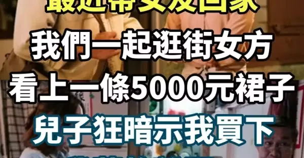 兒子念大四,連假帶女友回家我們一起逛街 結果兒子女友看上一條5000塊的裙子,兒子卻瘋傳暗示我要我去付錢...我滿頭問號「接下來老公的作法讓我看傻」 #真的是我該付錢嗎?🤔