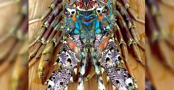 漁民捕到一頭六公斤重的「七彩龍蝦」,身體加觸鬚長達113cm,1天後竟賣出600000!