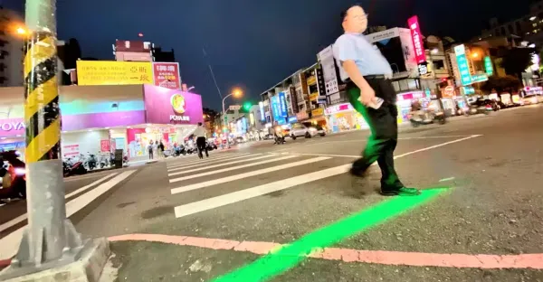 台中斑馬線新設投影紅綠燈,地板光源網友笑翻:過馬路要刷條碼