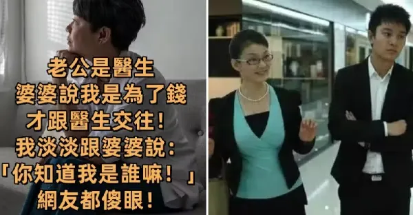 老公是醫生,婆婆說我是為了錢才跟醫生交往!我淡淡跟婆婆說:「你知道我是誰嗎!」網友都傻眼!