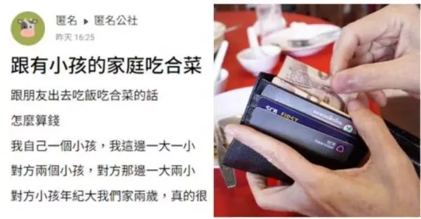 我和朋友聚餐,我帶一大一小、朋友帶一大兩小,他說要AA,我覺得被占便宜,要按人頭收吧…大家跟「有小孩的家庭」吃飯,都怎麼算錢?