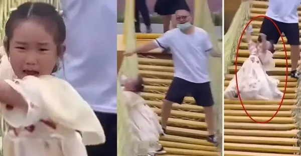 爸爸死命搖晃吊橋!女兒嚇哭手一鬆「縫隙掉下去」,結果悲劇了