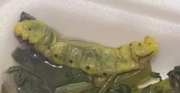 點燙青菜見「粗大毛毛蟲」橫躺餐盒裡!網友「見1亮點」崩潰:要吐了