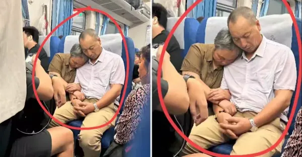 火車上偶遇一對老夫妻依偎而眠!網友卻放大照片急喊:快報警,他們身份不簡單!