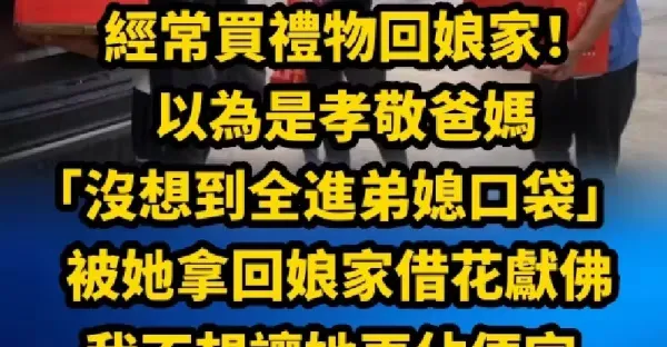 經常買禮物回娘家!以為是孝敬爸媽「沒想到全進弟媳口袋」,被她拿回娘家借花獻佛, 我不想讓她再佔便宜,這次假期「我空手回家」媽媽突然把我叫進廚房…