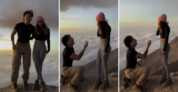 男子「火山頂」求婚,竟意外碰到「火山爆發」,鏡頭記錄全過程