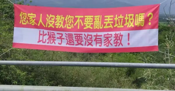 亂丟垃圾「比猴子還沒家教」! 花蓮箭筍農氣到做布條罵人