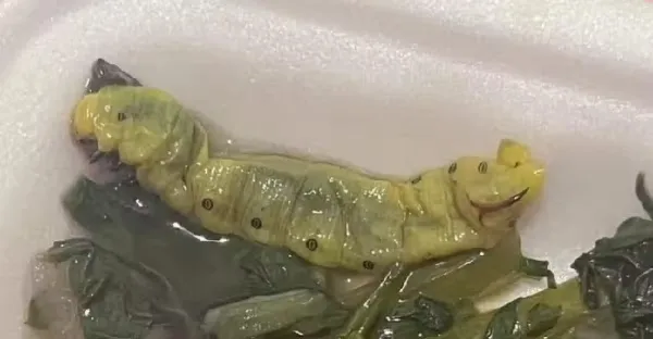 點燙青菜見「粗大毛毛蟲」橫躺餐盒裡!網友「見1亮點」崩潰:要吐了