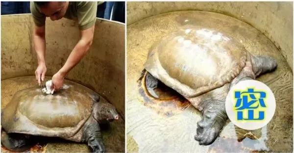 男子花25000元買一隻86斤酒店待烹飪大鱉,放生時大鱉頭部的一個舉動,讓岸上人驚慌失措