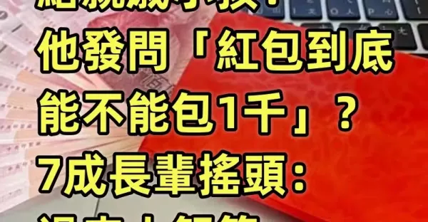 給親戚小孩!他發問「紅包到底能不能包1千」?7成長輩搖頭:過來人解答