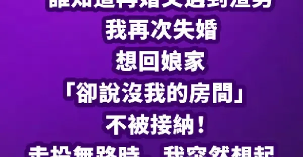 老公出軌又外遇,我帶著女兒失婚了…誰知道再婚又遇到渣男我再次失婚,想回娘家「卻說沒我的房間」不被接納!