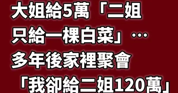 我向姊姊借款創業,大姐給5萬「二姐只給一棵白菜」… 多年後家裡聚會,「我卻給二姐120萬」把她奉為座上賓