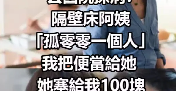 去醫院探病!隔壁床阿姨「孤零零一個人」我把便當給她 她塞給我100塊「求我做一件特尷尬的事」